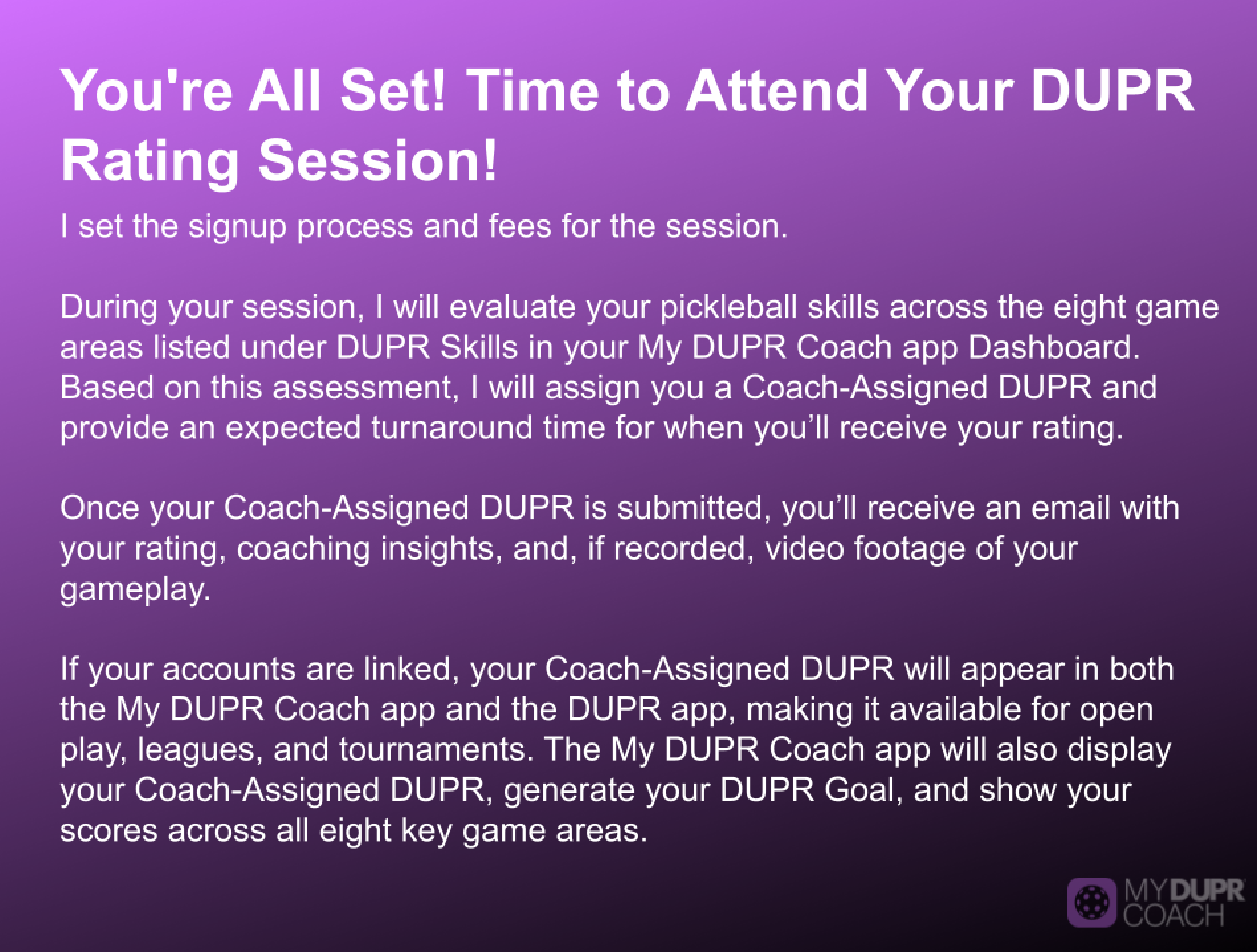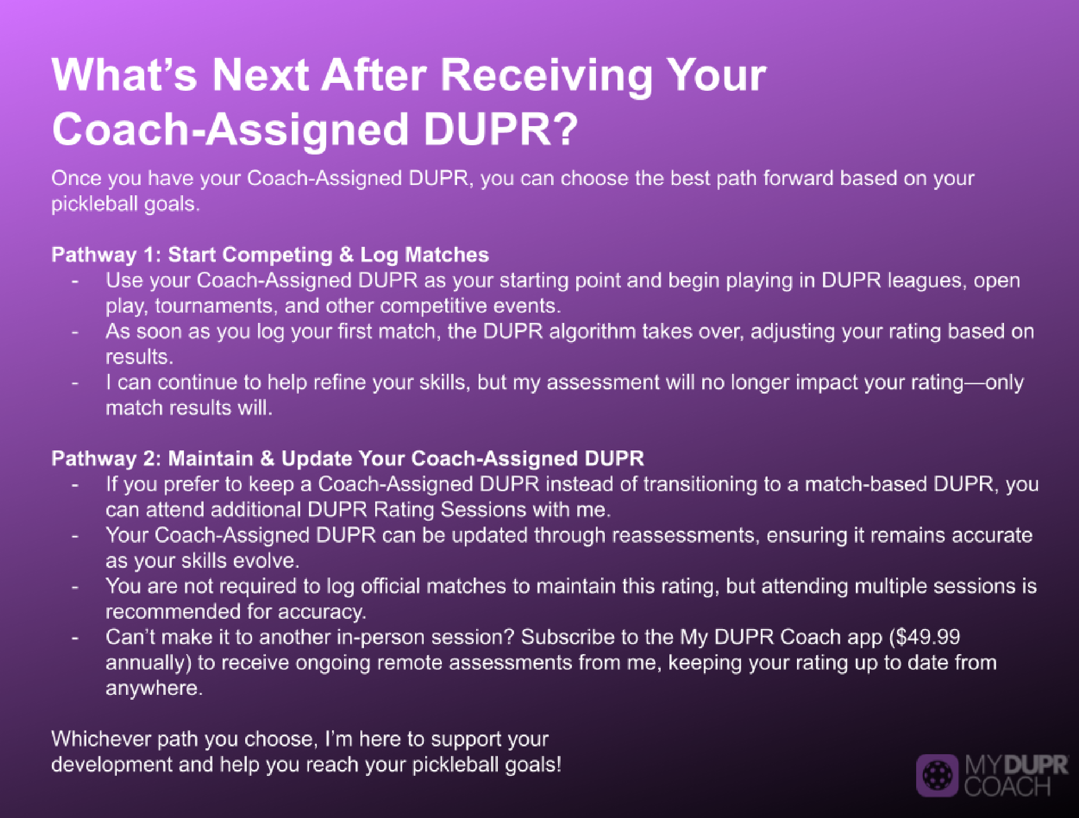 • DUPR Assessments