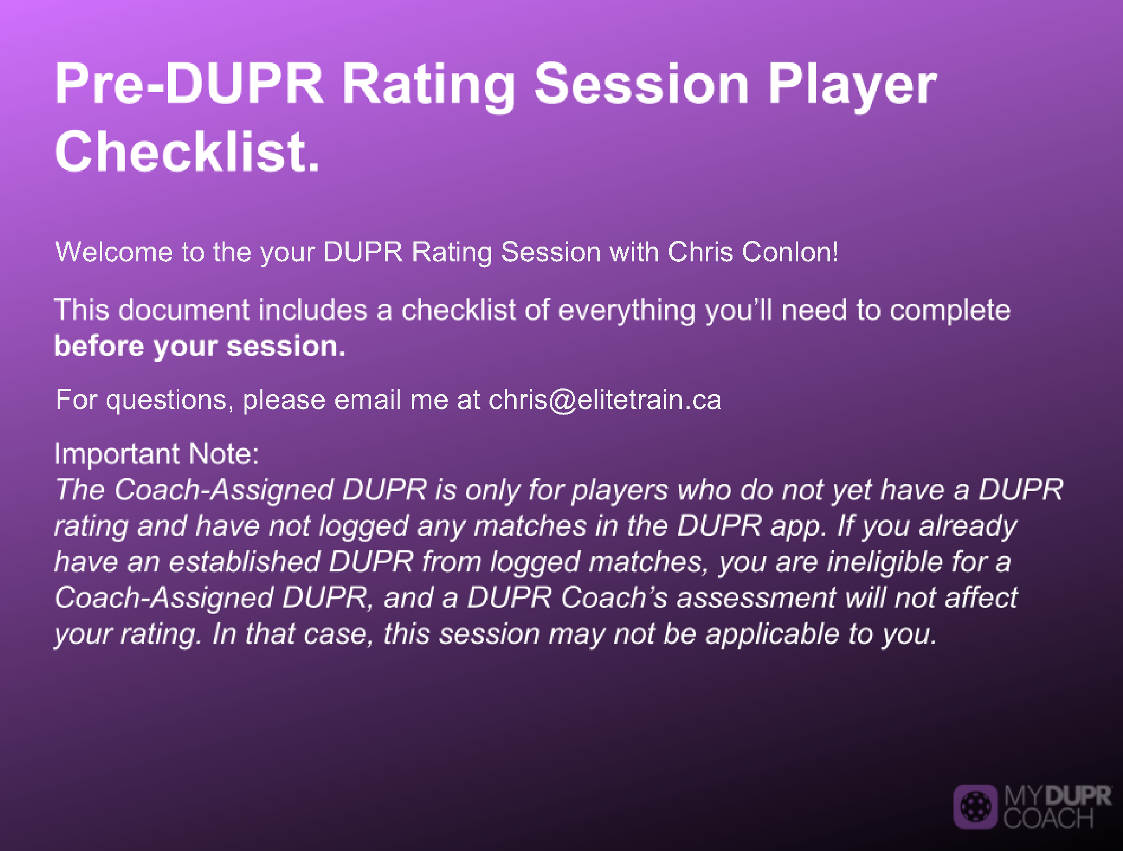 • Pre-DUPR Player Checklist